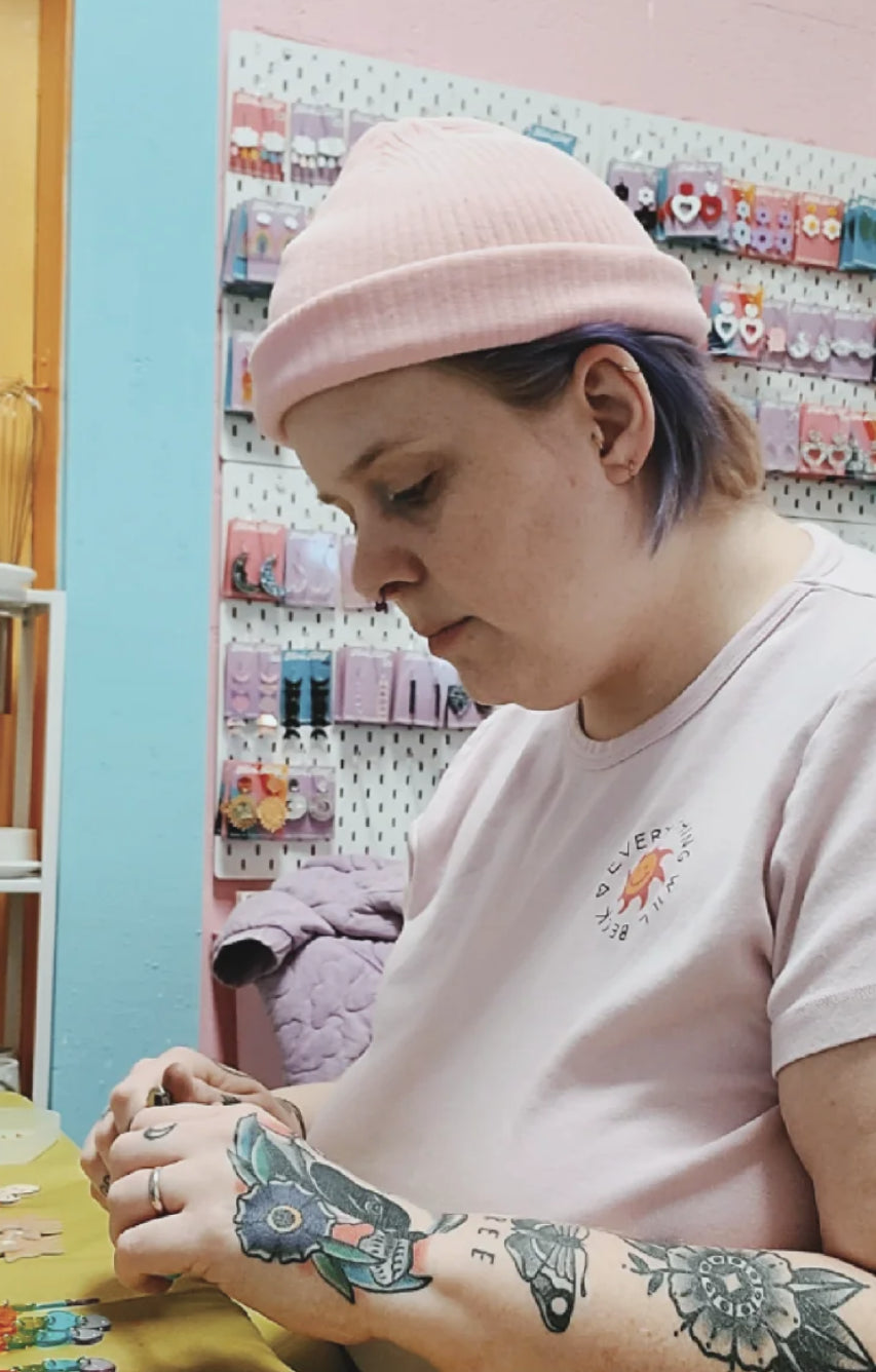 Lisa left her career in education in 2018 to start Mini Kitty Designs. Creating bright and fun earrings is her passion and it has brought immense joy and healing to herself and her family. Her work is inspired by play, nostalgia, and color; pieces that make a statement. Her earrings are printed using a laser cutting machine and finished with high-quality stainless steel findings.