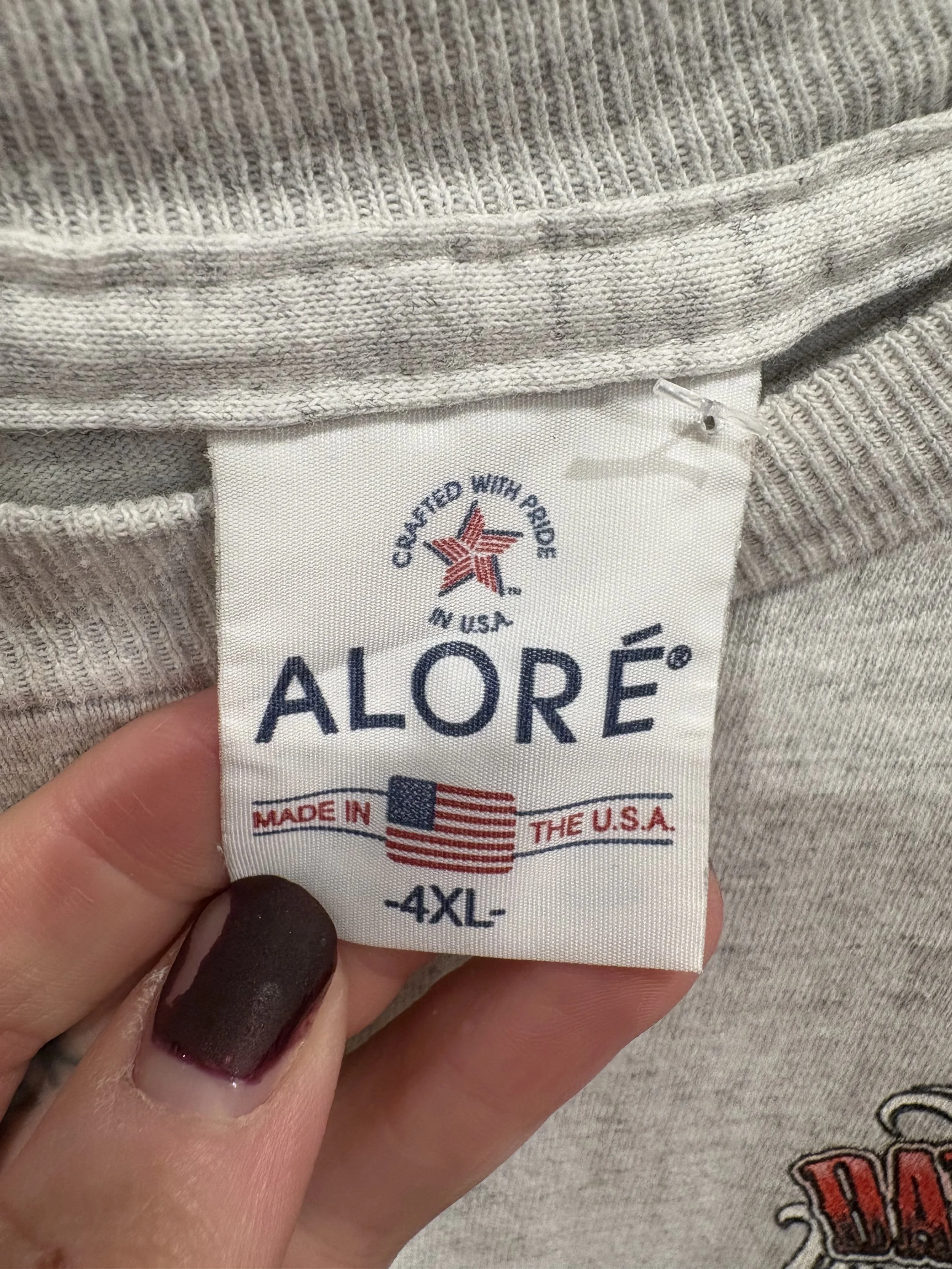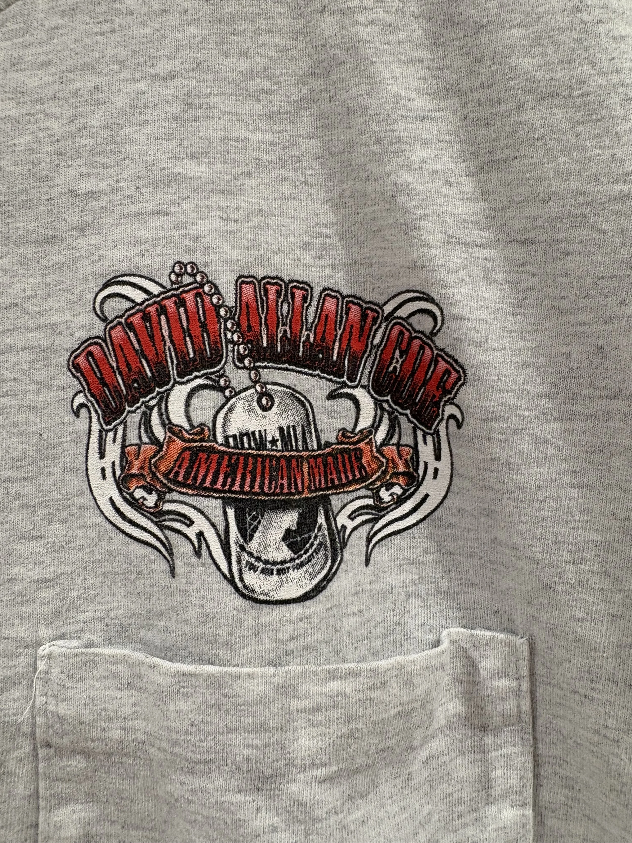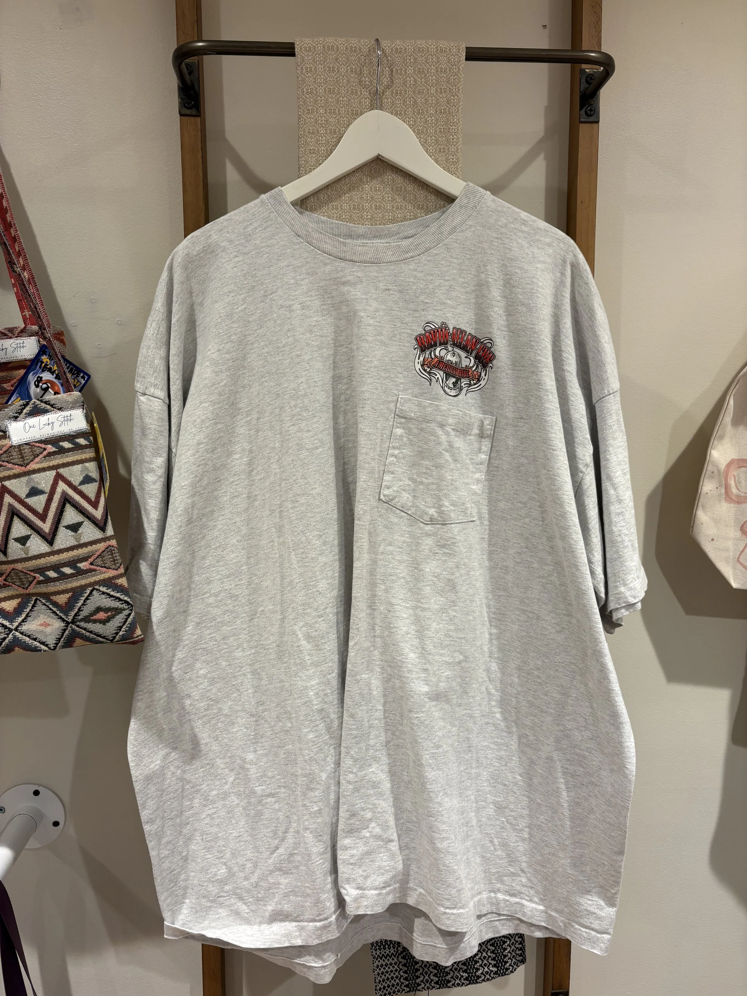 Screen print transfer that is individually heat pressed onto each t-shirt. High quality vintage wash t-shirt that gets softer after each wash.